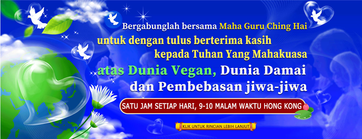 Cinta bukanlah kata di bibir, cinta harus menjadi perasaan kita di dalam dan diterjemahkan ke luar. Mencintai hewan, kita akan menjadi vegan. Mencintai Bumi, kita akan melestarikan alam. Mencintai dunia, menyelamatkan planet ini. - Maha Guru Ching Hai (vegan)